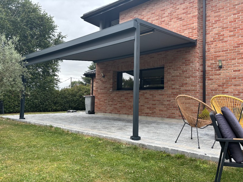 On a récemment installé cette magnifique pergola toile pour un client qui voulait profiter pleinement de son jardin tout en étant à l'abri du soleil.