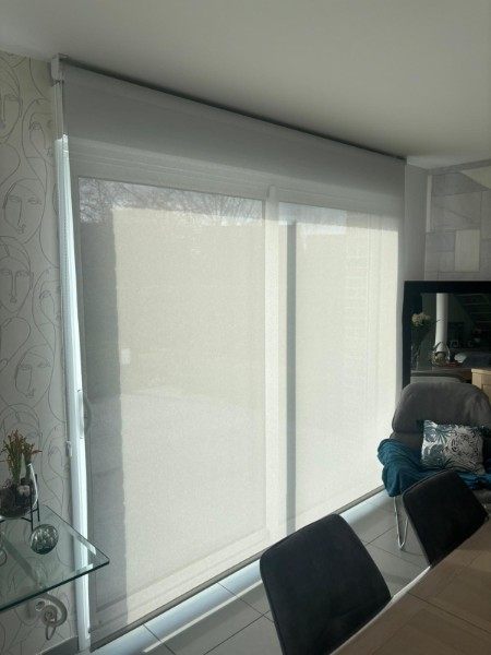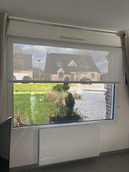 Nous avons réalisé la pose de stores enrouleurs pour apporter une touche à la fois contemporaine et chaleureuse à cette habitation