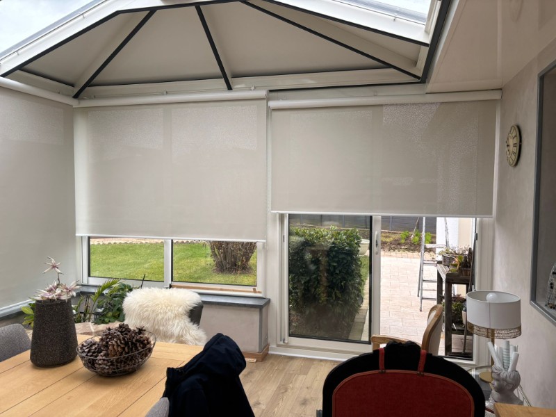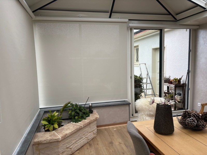Installation de stores enrouleurs dans une véranda pour mieux gérer la lumière et la chaleur tout au long de la journée