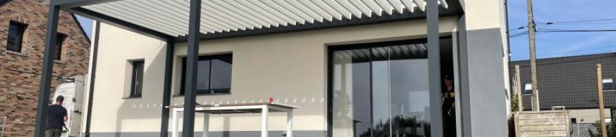 Pose ce jour d’une pergola bioclimatique sans souci, le résultat est très beau